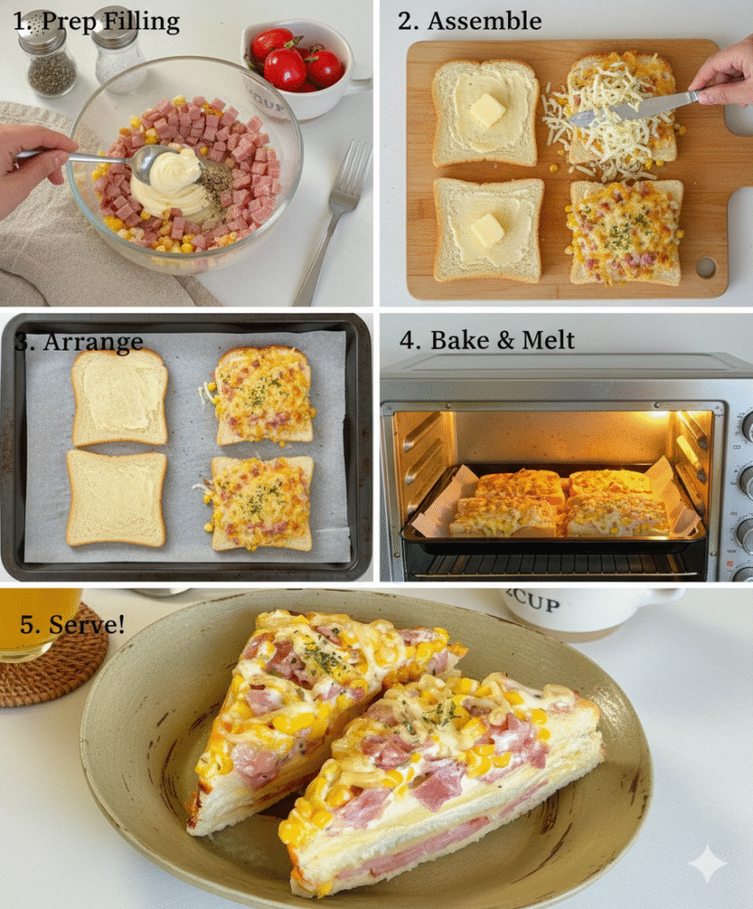 🧑🍳 Easy Recipe: Cheesy Ham & Corn Toast Sandwich