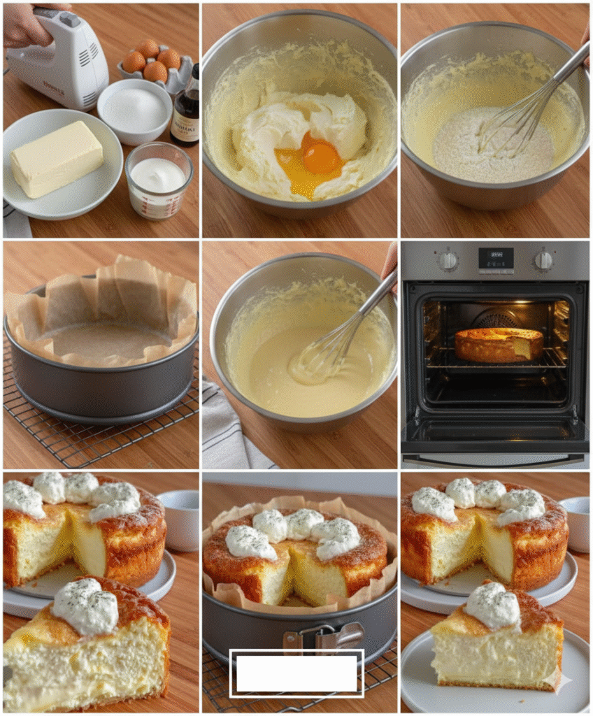 Ready to try it yourself? Here is the step-by-step guide to making this surprisingly simple cream cheese cake recipe. You’ll need about 15 minutes of prep time and under an hour of baking.