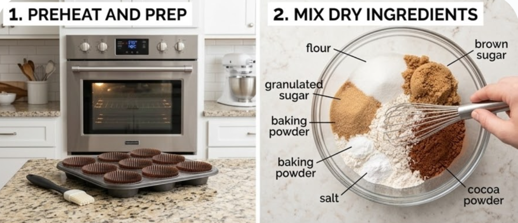 1. Preheat and Prep: Preheat your oven to 375°F (190°C). Line a standard 12-cup muffin tin with paper liners or lightly grease with butter.